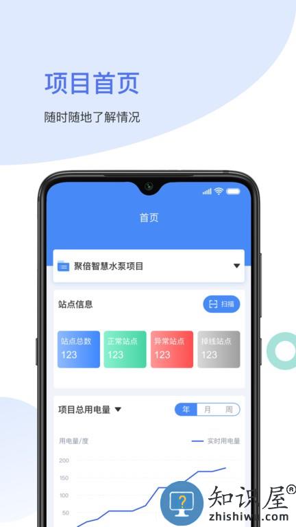 聚倍智慧水泵app,主要功能是水泵设备的在线监测和管理,包括公司和项目的管理、站点的管理、水泵的管理,在app端展示和管理设备。