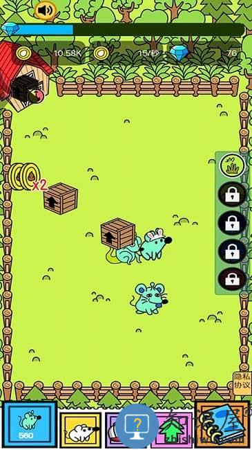 疯狂地鼠游戏是一个卡通风格的趣味游戏,游戏中的画面制作采用卡通风格颜色搭配也十分亮丽,可以带个玩家舒适的视觉体验感。在这里你有不断的进化为新的老鼠,这里还能不断解锁新的装备和道具,多种玩法可以体验。