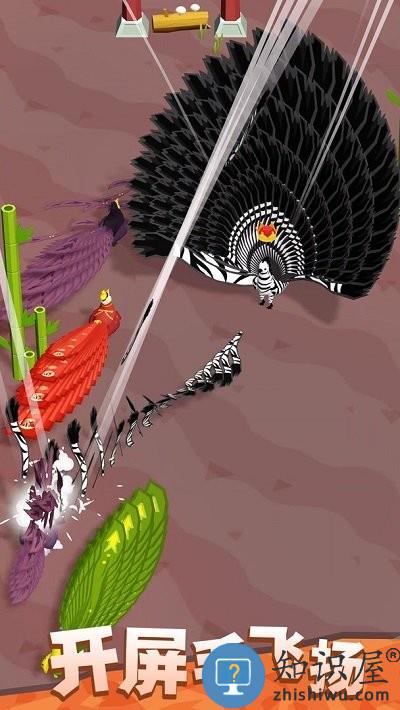 3、灵活的走位,轻松的闯关,需要和各种其他的孔雀进行竞争,去将其他孔雀的羽毛变为自己的