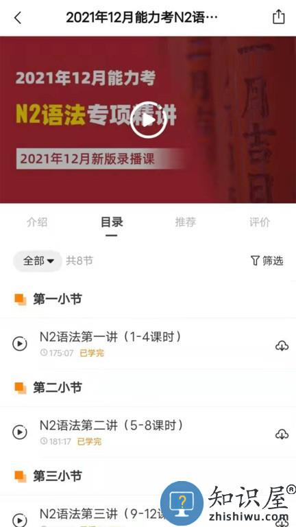 纳豆网校app最新版包含的日语课程丰富,支持查看课程的详细目录和介绍,能够在线上直播课,还能加入班级,在线做题进行巩固和测试,能够查看日语的语法,还能找日语相关的工作。