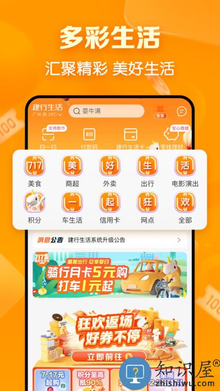 建行生活app可以查看生活服务相关公告和优惠资讯。