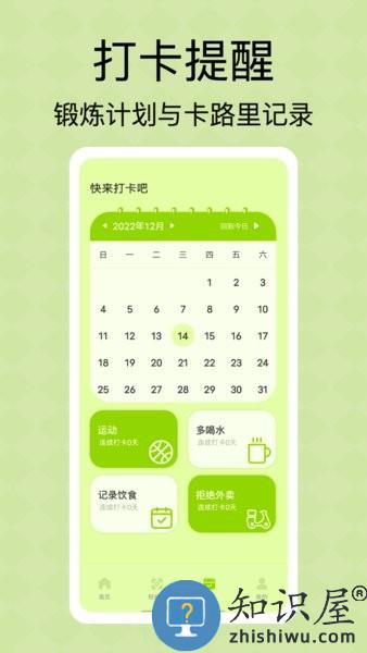 运动/喝水打卡计划:卡路里记录追踪,饮食,喝水等直观的设计准确知道您一天的摄入与消耗量