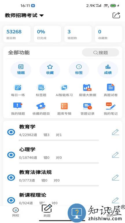 根据各省以及个人教师招聘、教师资格考试考点,实时记录练习情况,并自动错题统计,系统自动收集考试或练习中的错题并加入错题本,可在错题本重做错题。