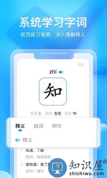 字词学习:轻松自主学习字词笔顺、读音、释义、组词等,由易到难,提升孩子学习能力。