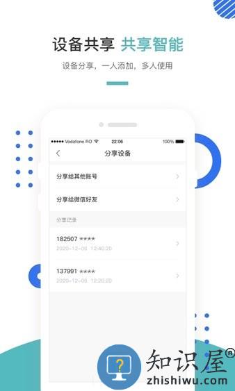 分享:分享有两种方式,微信分享和账号分享;微信分享是分享给微信好友,账号分享是通过手机号码分享;被分享者也可以控制设备的开关,可以定时、循环定时等