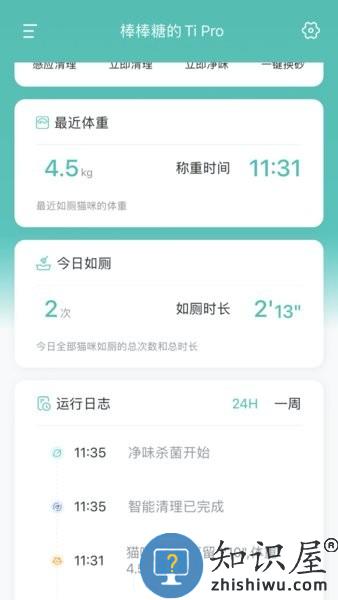糖派宠物app可以同时添加多个宠物以及智能设备进行管理,能够及时记录宠物的体重,如厕时间和次数等,还能查看感应清理以及智能净味的次数,设备的运行日志也非常详细。