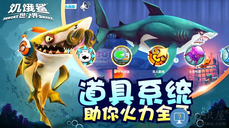 --升级你的鲨鱼装上超酷的装备,要大力一点、游快一点更饿一点!每只鲨鱼都需要、耳机、雨伞还有超炫的喷射背包;
