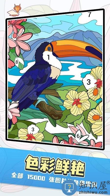 减压放松的绘画填色游戏,里面含有大量的图画作品,根据指定数字进行涂色就可以给你喜欢的作品上色了。非常适合孩子使用,同时孩子可以在这里认识很多的颜色,也是孩子早教启蒙的好工具,培养孩子想象力和创造力。