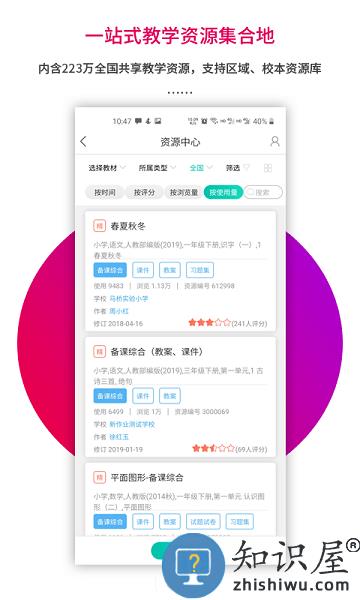资源中心是老师创建私有资源库、校本资源库及备课的平台。提供超过502万各类同步教学资源,包括课件、教案、素材、视频、试卷等。支持下载、在线查看、收藏、引用、发布给学生、上传创建资源等多种功能。