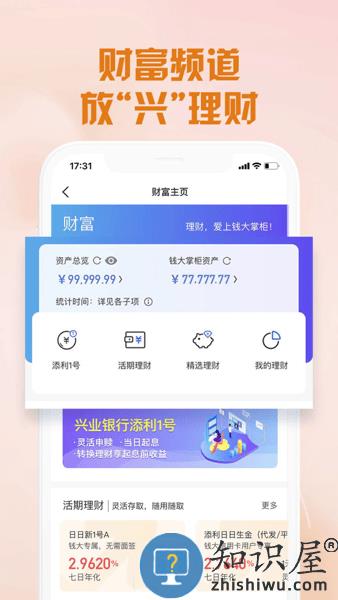 6、【财富频道 放“兴”理财】钱大掌柜为您优中选优,精选财富产品,任一银行借记卡客户皆可购买。