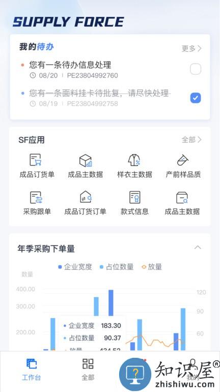sf服装协同app最新版是服装行业的管理好工具,能够查看最新的订货单,支持进行跟单,可以查看采购下单量的数据柱状图,对于材料成品的采购以及样衣均可进行管理。
