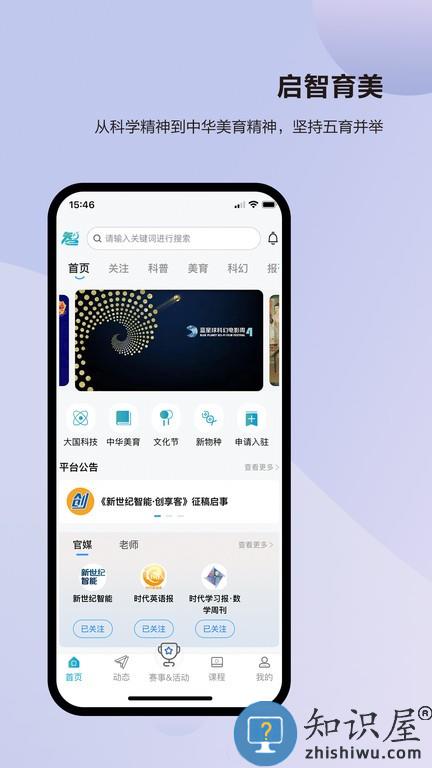 以赛事活动构建校、媒、师、生联盟。从大国重器到科普新知,从功勋科学家到科学小达人,从中华美学经典到世界艺术殿堂,从专业课程到趣味短视频,从文化节到体验营,APP将通过人工智能技术,记录用户脚印并生成个性化成长报告。