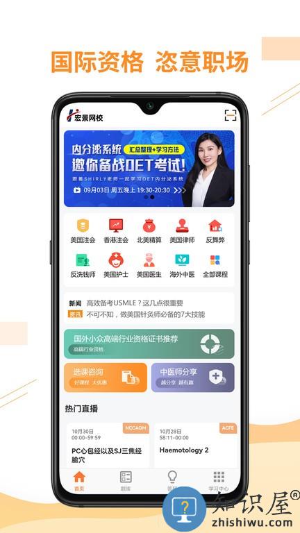 宏景网校apk最新版包含的网课资源非常之丰富,可以在在线上直播课,在学习以后能够做题进行练习,还有各行业大咖们分享的干货,支持在线进行测试,有贴心的精彩课程直播预告,学习超方便。