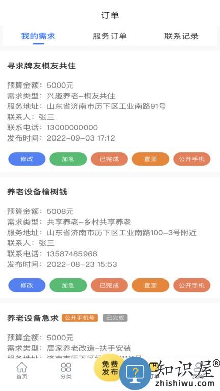 需求订单,机构可以查看订单后进行接单服务该位老人;