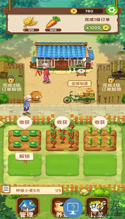 爷爷的小农园最新版是一款超好玩的农场题材经营模拟小游戏,玩家需要在游戏中打理爷爷的农场,和爷爷一起种植各种农作物,养上各种小动物,将爷爷的农场建设的越来越漂亮;并且,等果实成熟后,还会有真实的收益哦,喜欢的朋友赶紧来试试吧!