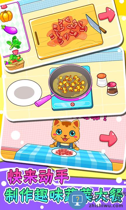 2.游戏还融入了小厨房版块,宝宝自己处理新鲜的蔬菜