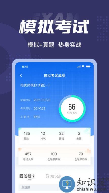 拍卖师题库内含考点练习,全国通用卷以及地区卷模拟练习,以及按照固定考试比重的随机式的抽题的真题考场,成绩单实时记录考试数据,一点一滴的反馈考生近期学习状态以及自我正确率的提升,大大的给予考生通过考试的信心。