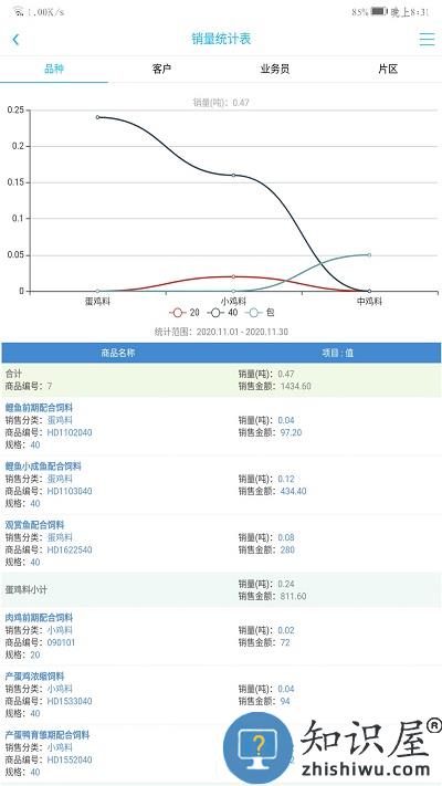 6、应用中有销量统计表,用户可以看到各个品种的销量信息,了解销量变化情况;