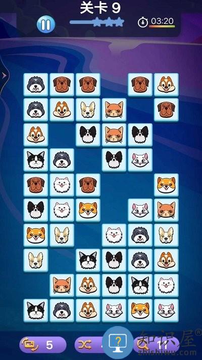 由可爱宠物组成,需要选择一对相同的图案连线,精致的画面卡通趣味十足,把所有能连接的相同图案消除,玩法简单操作便捷,相对于其他版本的连连看简单了很多,赶快来玩吧!