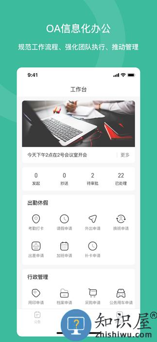 2、帮助企业高效工作,由学习中心信息化团队开发,提供考勤、合同审核、资产购买等流程在线审批功能。