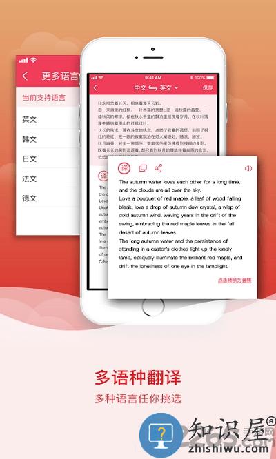 图片翻译:支持多种语言的全文互译,无需打开翻译app,直接调用扫描识别。