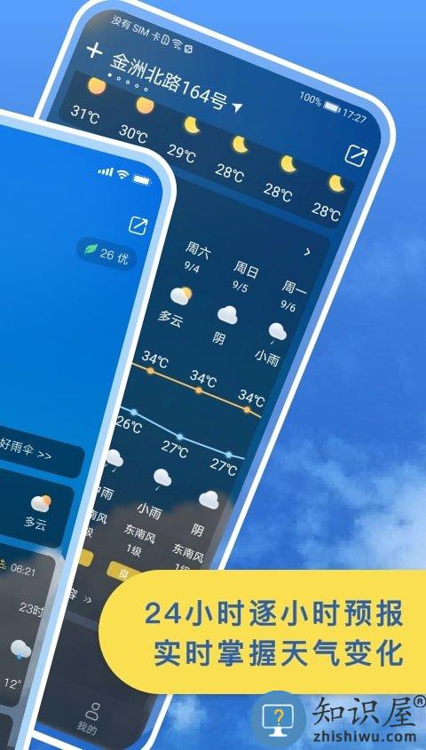 实时掌握24小时天气变化-温度、湿度、风力、空气质量、日出日落