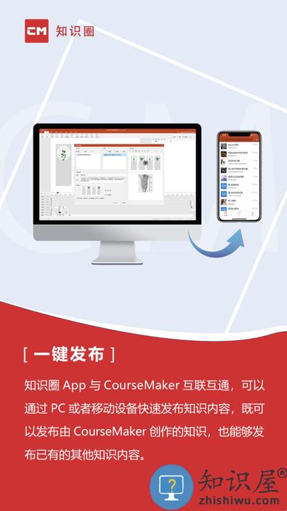 5、通过CourseMaker微课程制作系统在PC上或者通过知识圈APP在手机上发布知识/微课/习题;