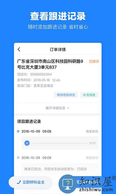 有新的派单项目,手机上会实时收到提醒,可以快速回访业主。