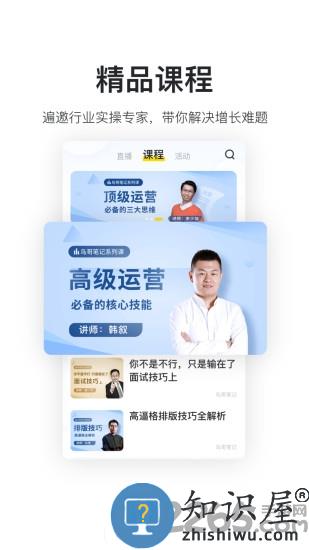 精选优质视频课程,APP营销推广、APP变现、抖音涨粉、用户运营、新媒体运营、活动运营全覆盖,遍邀行业实操专家亲自讲解,带你解决职场难题.