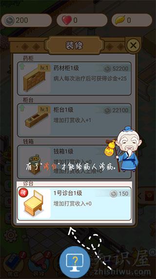 2、点击装修按钮,查看和升级医馆设施。