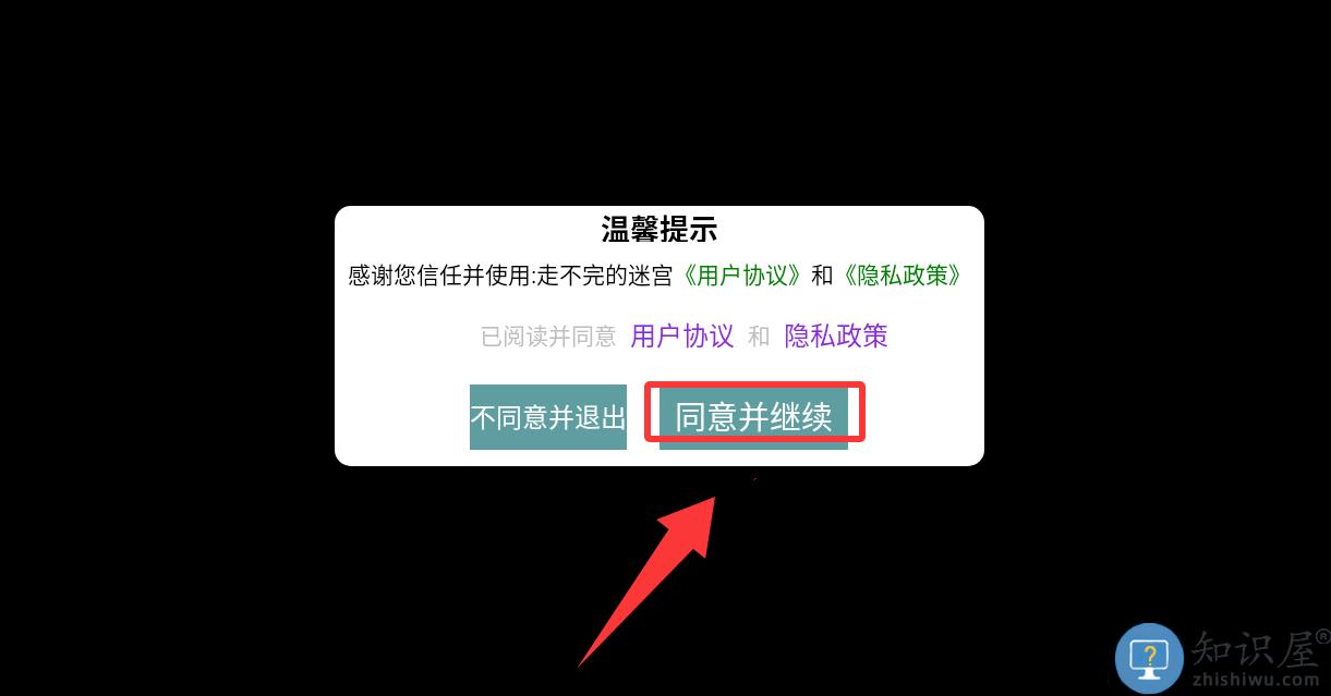 1、点击温馨提示里的同意并继续。
