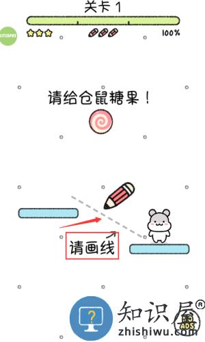 2、用铅笔画出线条,将糖果送到仓鼠面前。