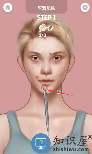 2、对准痘痘按压痤疮针,完成瑕疵处理步骤。