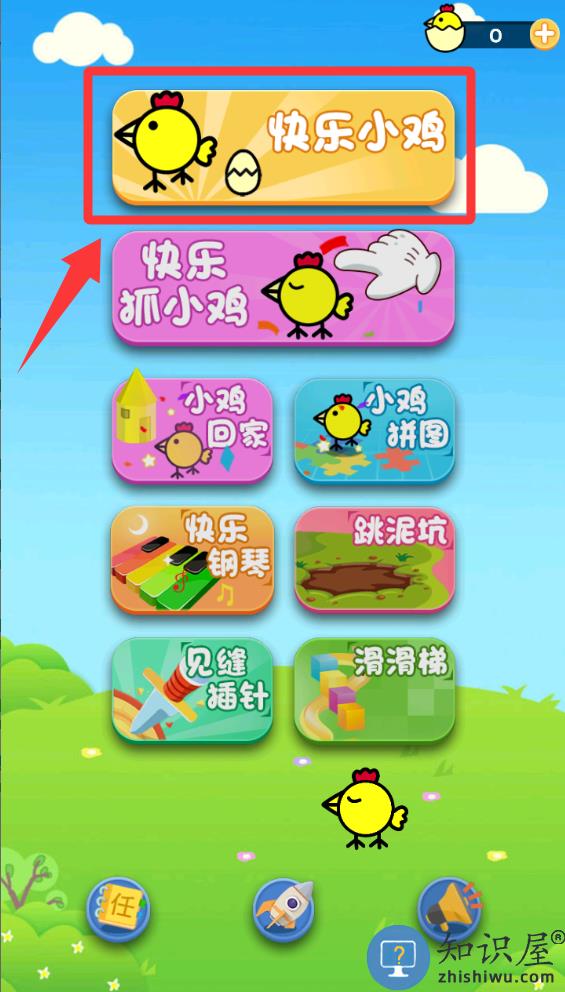 1、进入游戏点击红色框框里的快乐小鸡并进入。