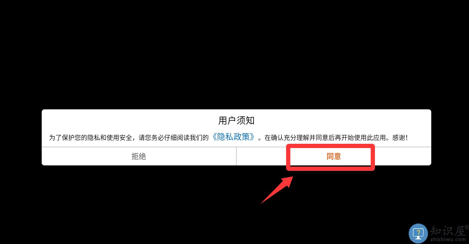 1、点击用户须知里的同意并继续。