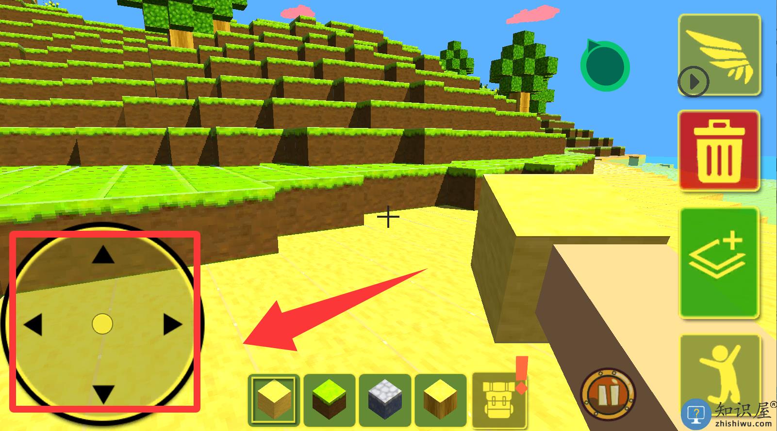 3、左下角红色框框是控制角色前后左右移动。