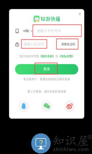 3、输入手机号码,获取验证码完成登录。