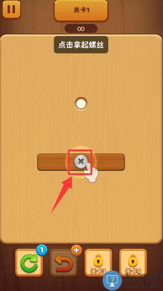 2、进入游戏点击红色框框里的螺丝就可以拿起来了。
