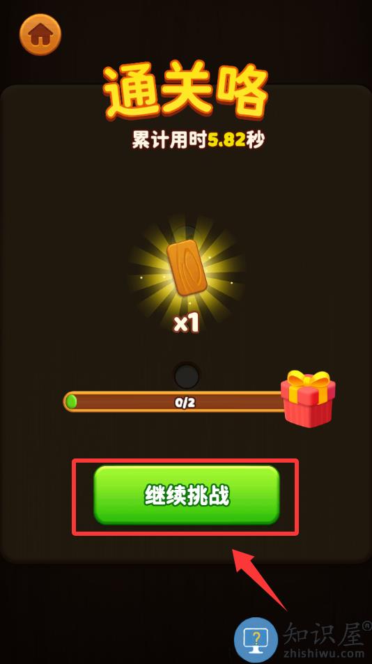 3、你好棒棒啊,恭喜你通关了。点击继续挑战。