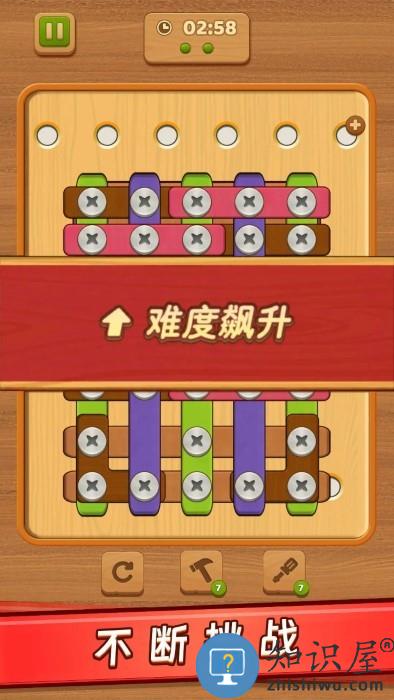 螺丝钉解谜游戏点击的休闲闯关挑战手游,玩家们可以在这里解锁更多的螺丝钉,让你的木板全部的掉下来,在保证有位置的情况下,能更好的去移动,是时候来一场独有的解谜闯关体验,一起来这里看看吧!