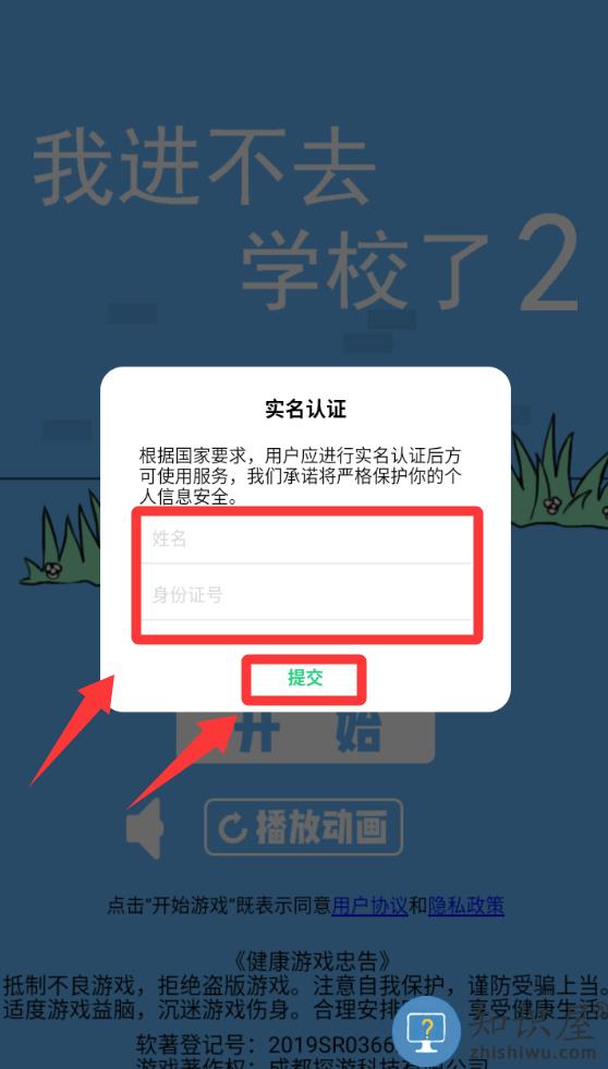 1、进入游戏填写真实姓名和身份证号码并提交。