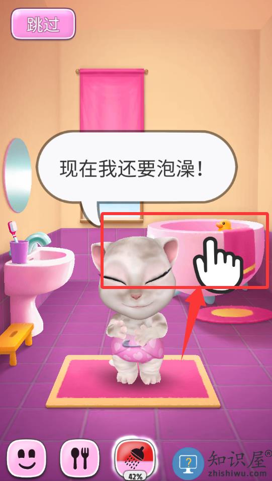1、进入游戏小猫说它要泡澡,点击浴缸给它泡澡。