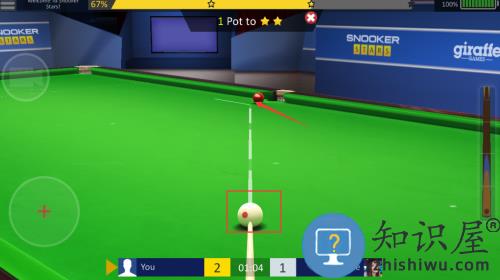 1、瞄准红球击打,完成一杆进洞得分任务。