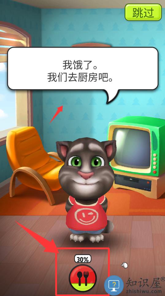 4、当汤姆猫的显示饥饿时需要喂它吃东西,点击食物即可喂食。