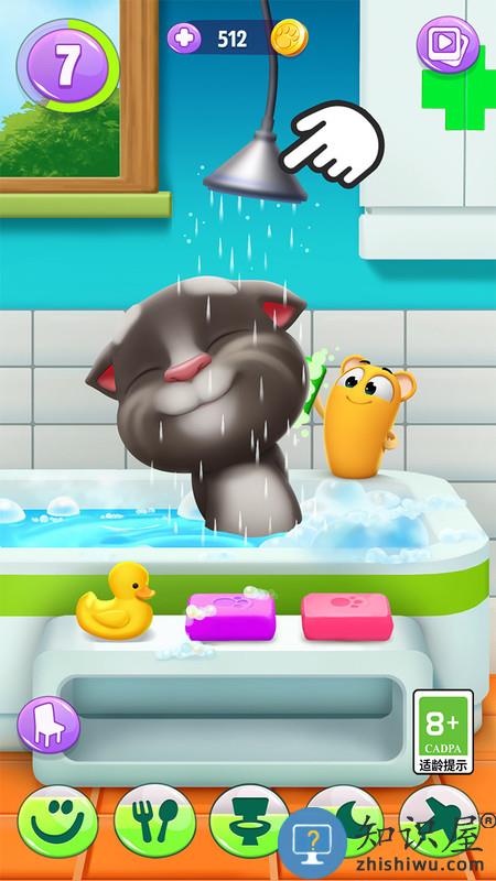 6、如果吃多了,汤姆猫会想上厕所,这时候就需要到浴室点击马桶,汤姆猫就会自己去上厕所了。