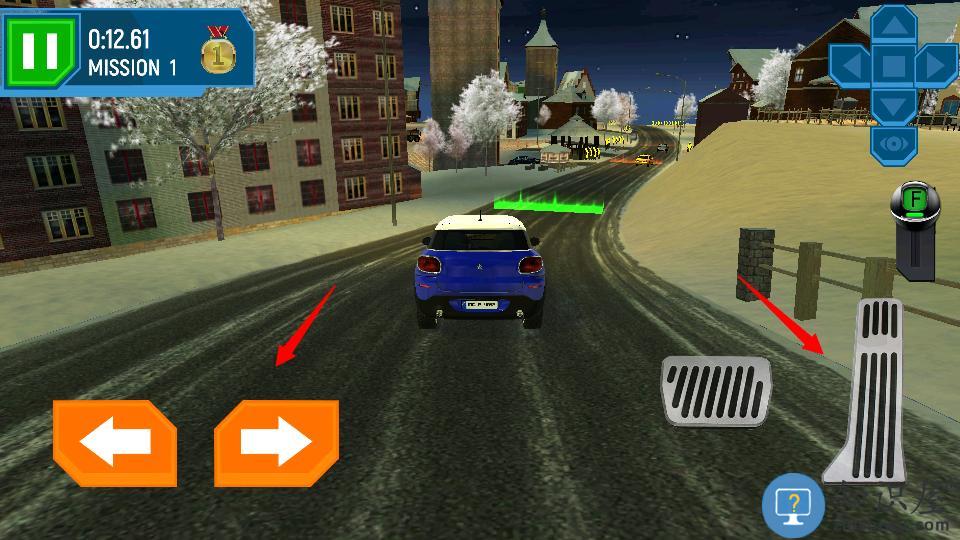 1、左下角的方向盘控制着你的车的前进方向,享受雪地救援挖掘机的升级操控。
