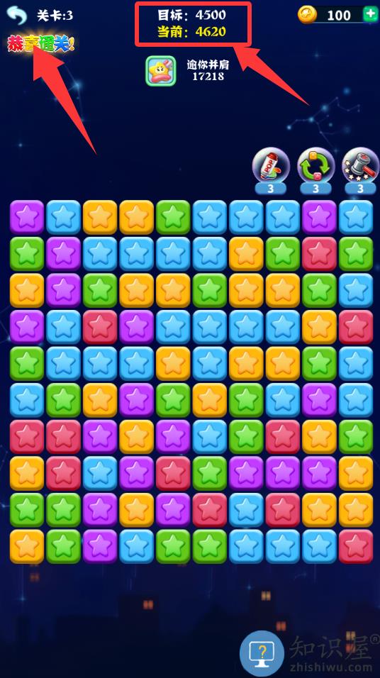 2、把这些剩余的星星都消灭掉就可以下一关了。