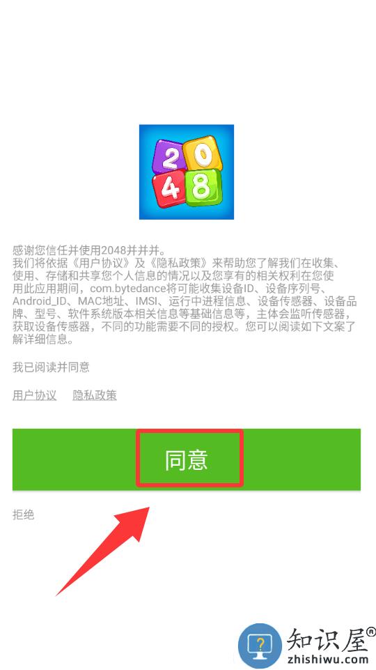 1、点击红色框框里的同意并进入游戏。