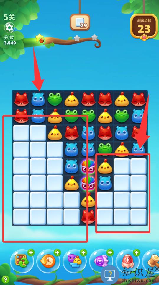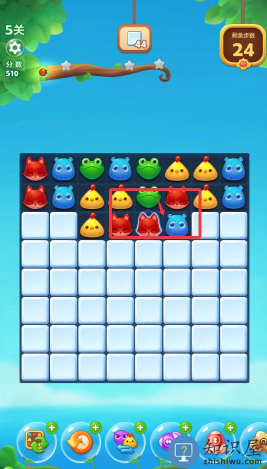 1、进入游戏点击红色狐狸移动到下面就可以3消了。