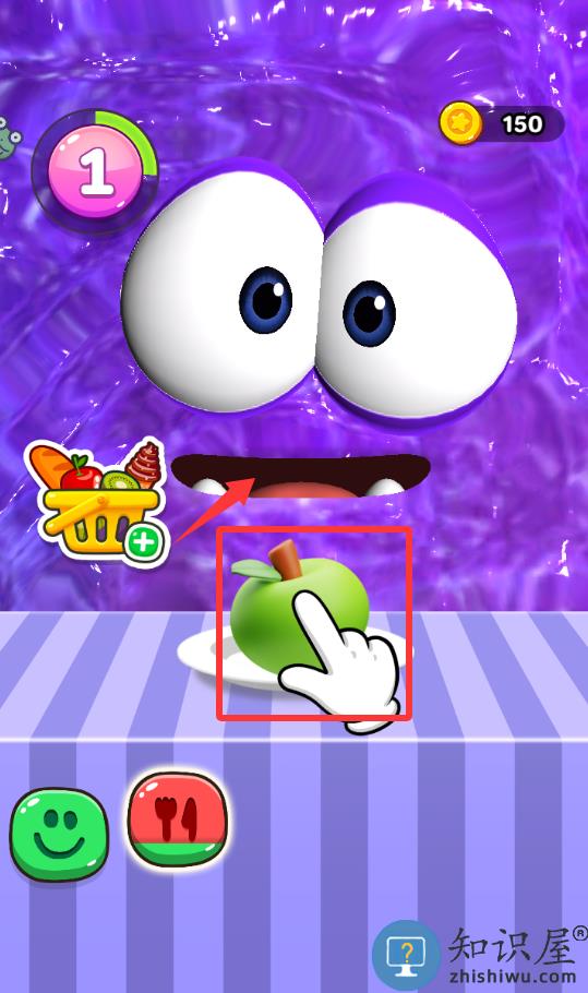 1、进入游戏点击长按苹果移动到它的嘴里。